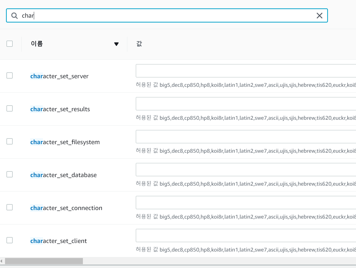 - 몇몇 character_set & collation 이 latin_1 로 되있어서 Alter를 통해 utf8mb4 로 변경