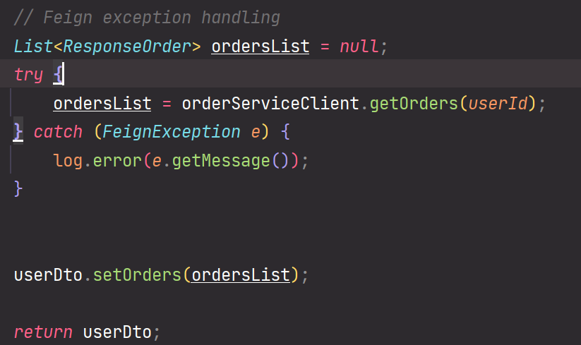 - UserServiceImpl에서 Feign Client 사용